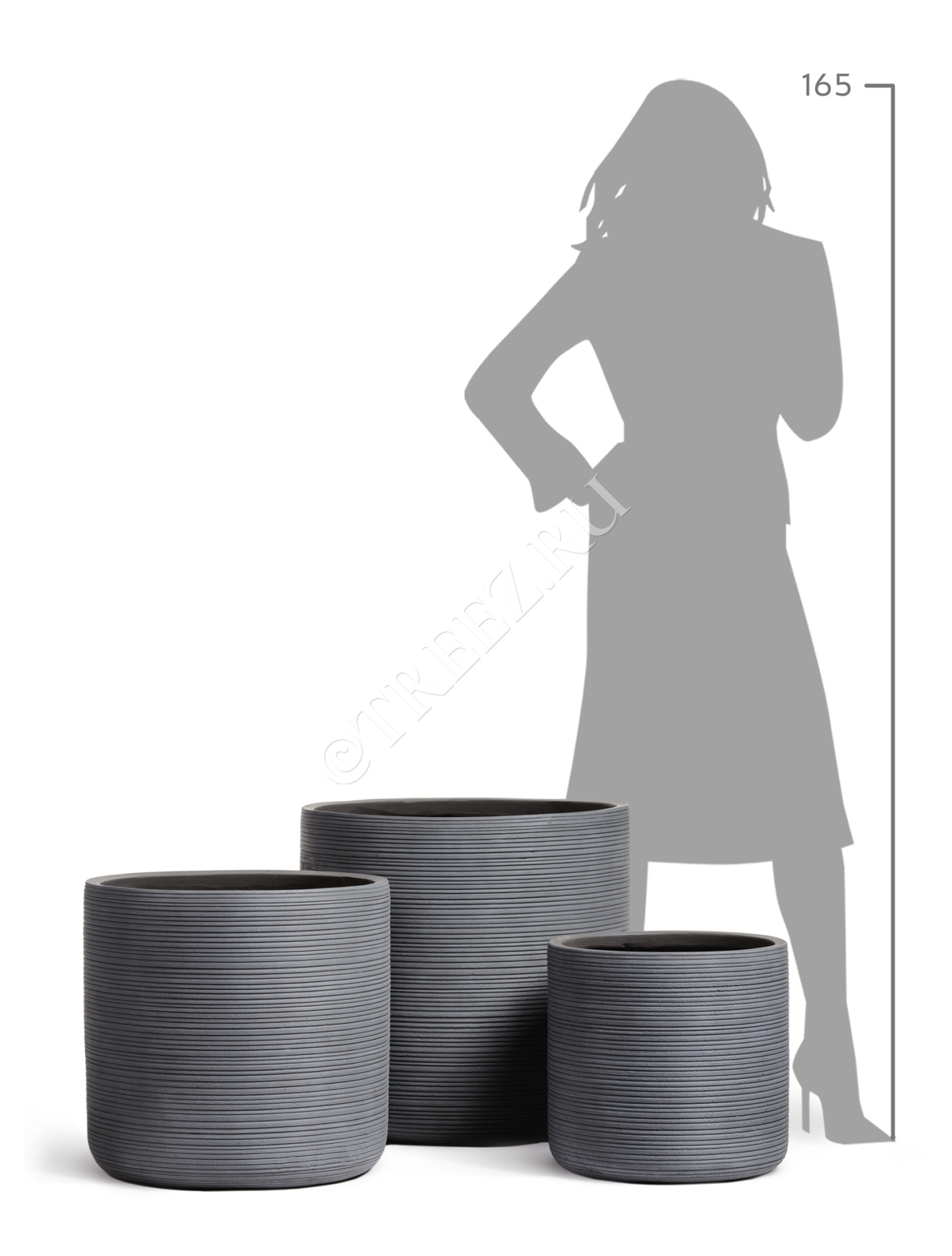 Кашпо TREEZ ERGO - TreeLine - Цилиндр - Дымчато-серый бетон