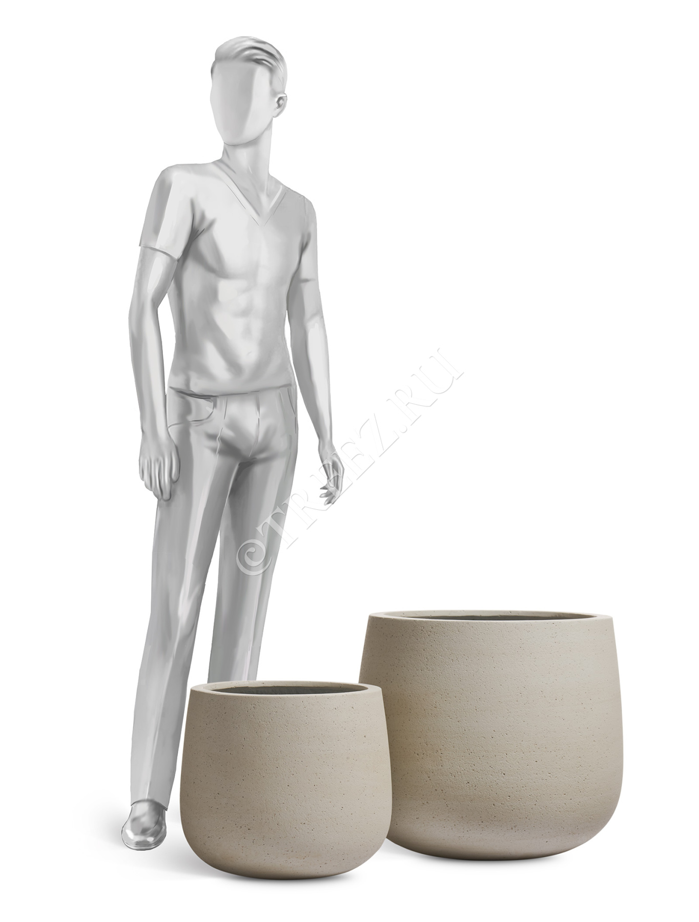 Кашпо TREEZ ERGO - Fine Rock - Высокая округлая чаша - Белый песок