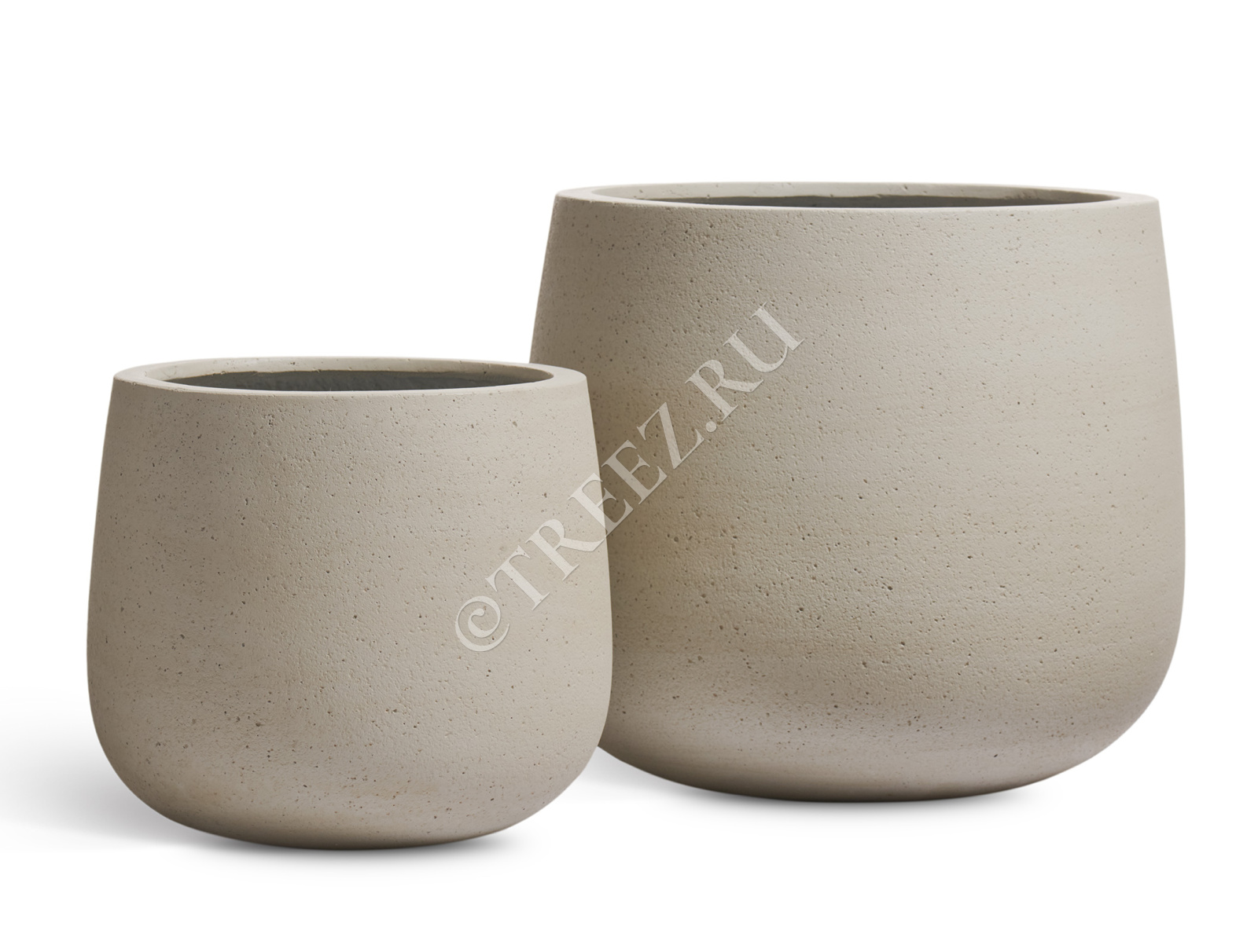 Кашпо TREEZ ERGO - Fine Rock - Высокая округлая чаша - Песок тёплый беж