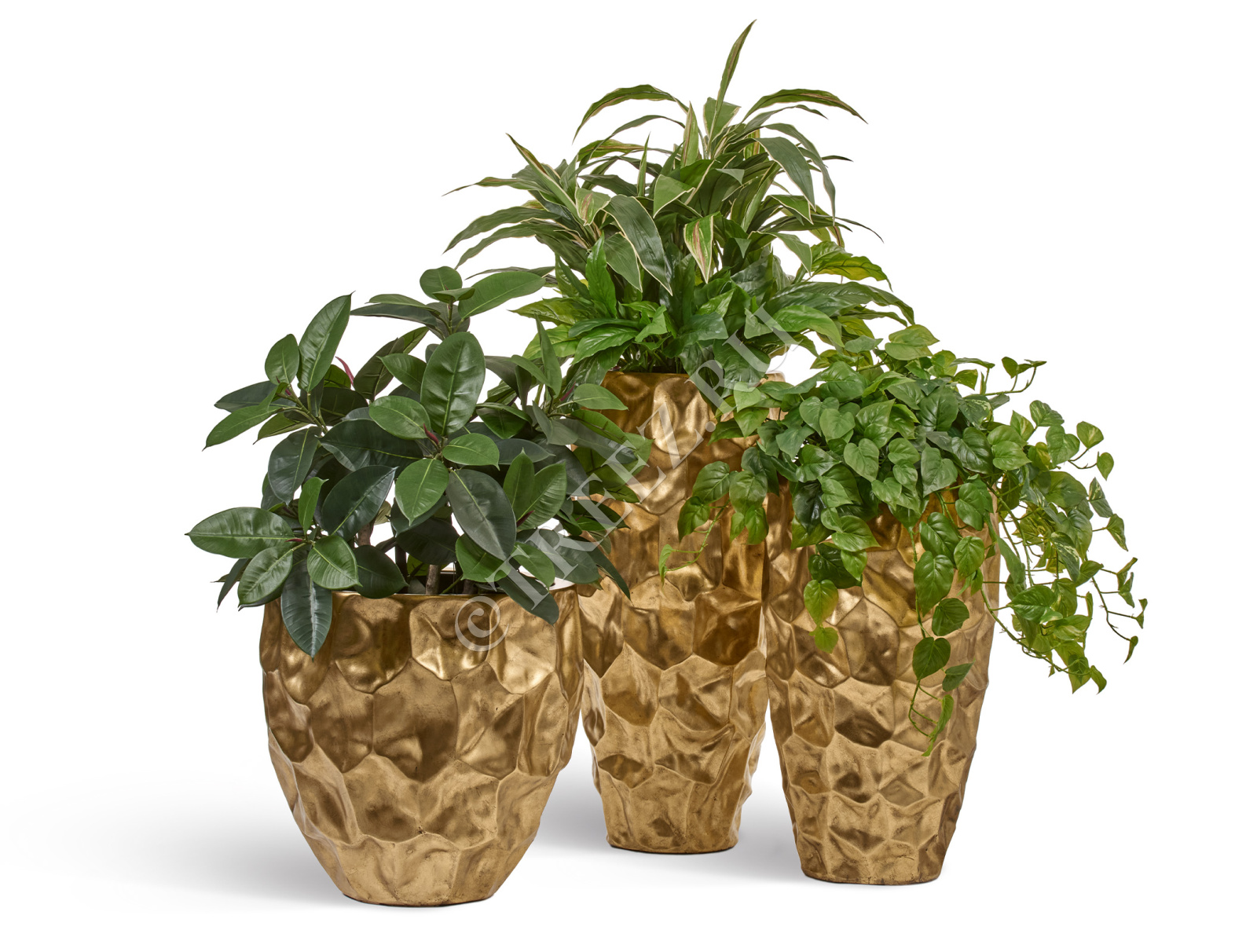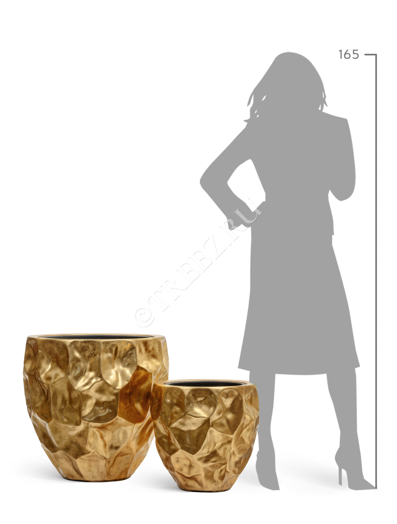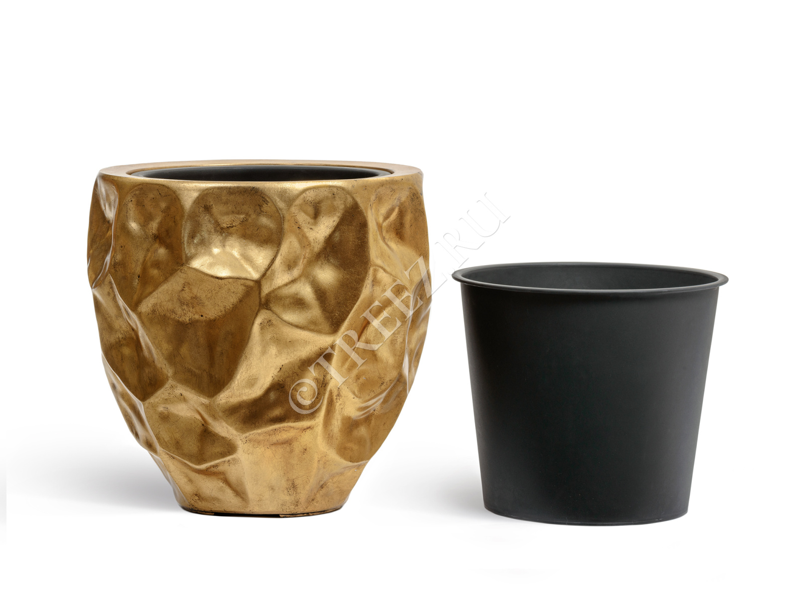 Кашпо TREEZ Effectory - Metal - Высокая лодка Design Crumple - Сусальное золото