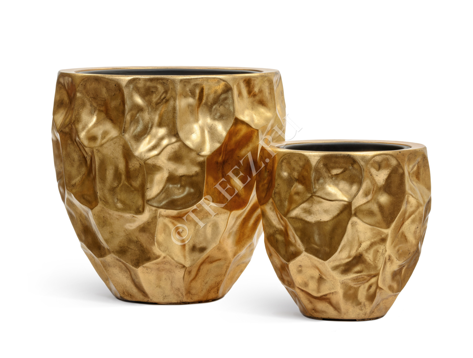 Кашпо TREEZ Effectory - Metal - Округлая чаша Design Crumple - Сусальное золото