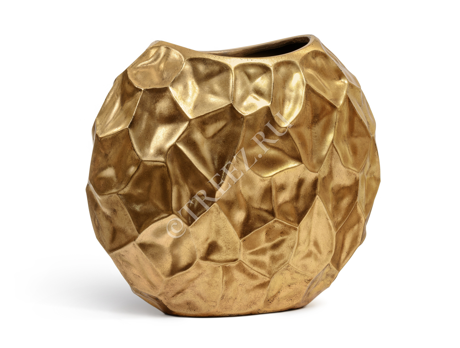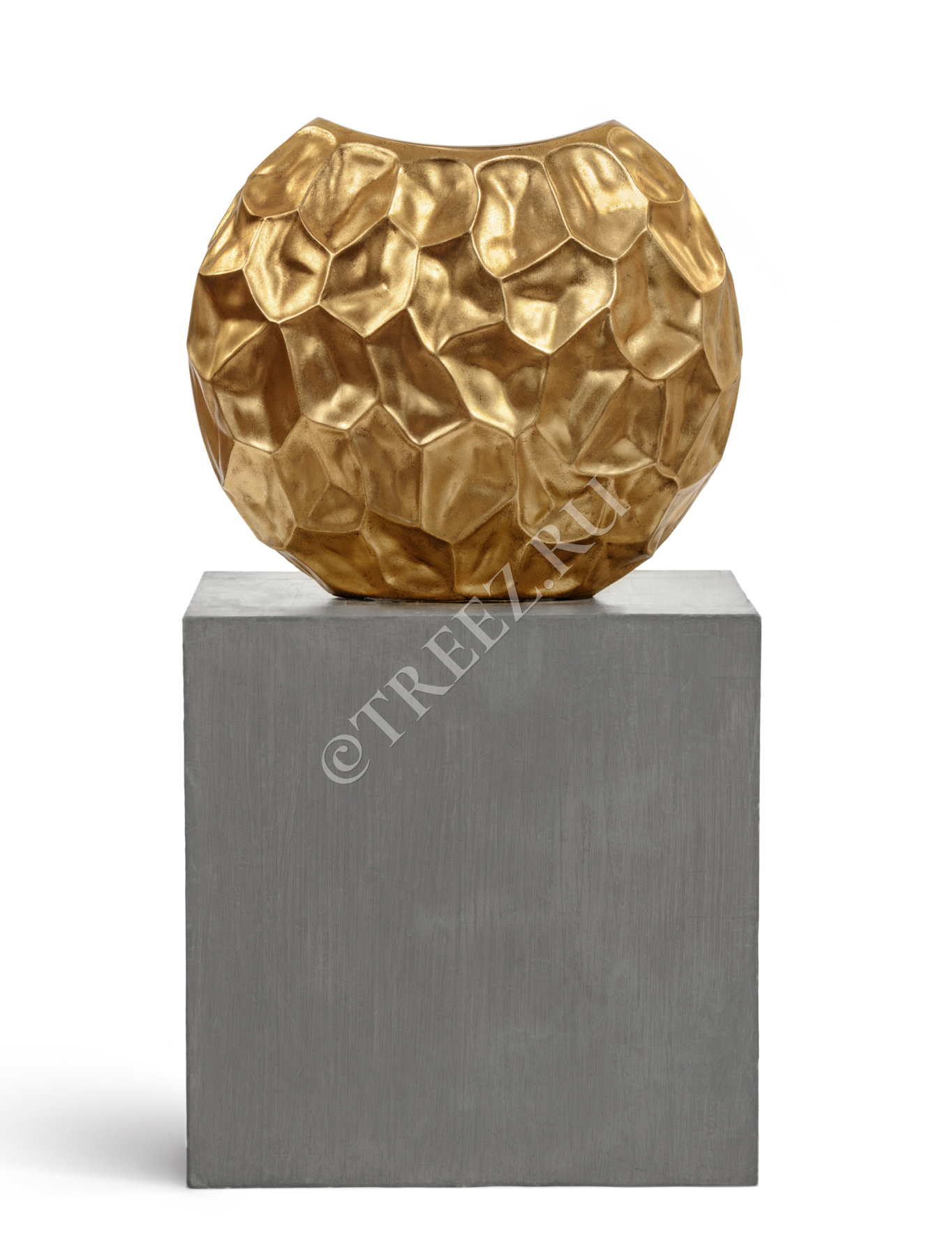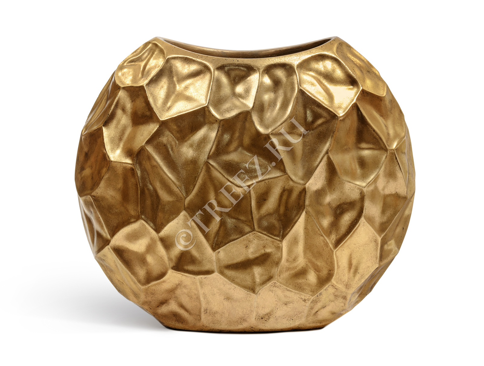 Кашпо TREEZ Effectory - Metal - Плоская сфера Design Crumple - Сусальное золото