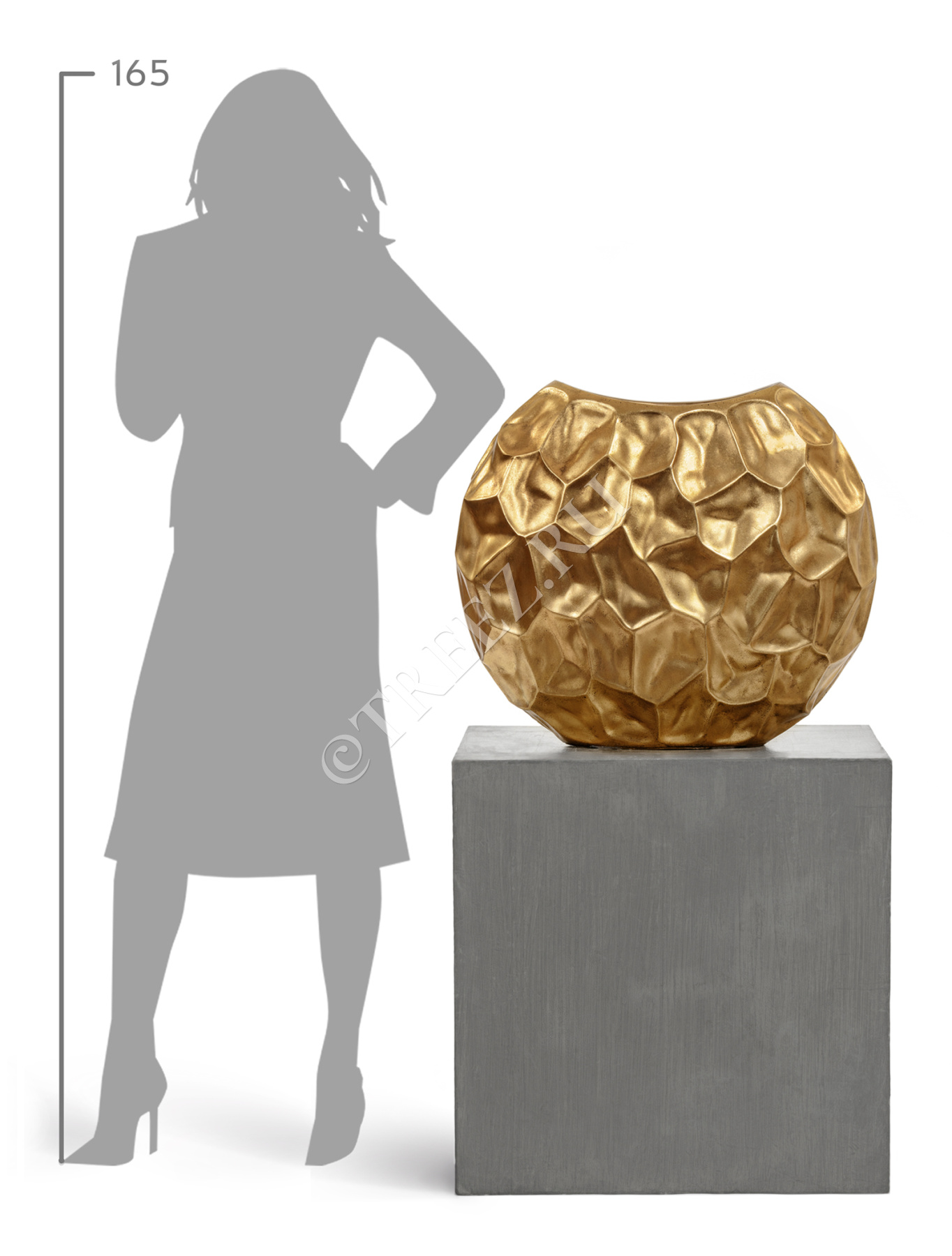 Кашпо TREEZ Effectory - Metal - Округлая чаша Design Crumple - Сусальное золото