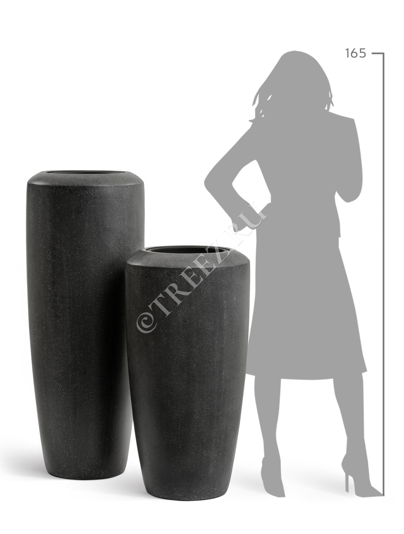 Кашпо TREEZ Effectory - Quartz - Высокий конус - Чёрный кварц