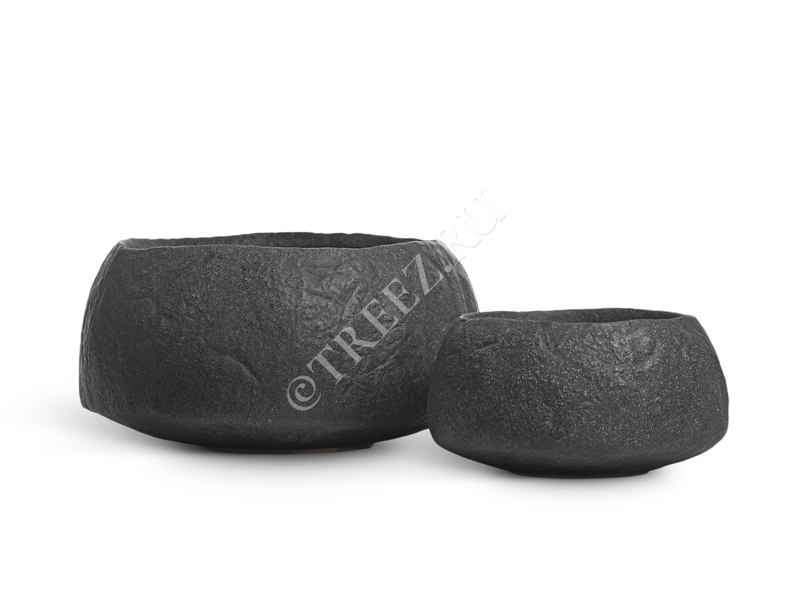 Кашпо TREEZ Effectory - Organic - Низкая чаша - Тёмно-серый камень