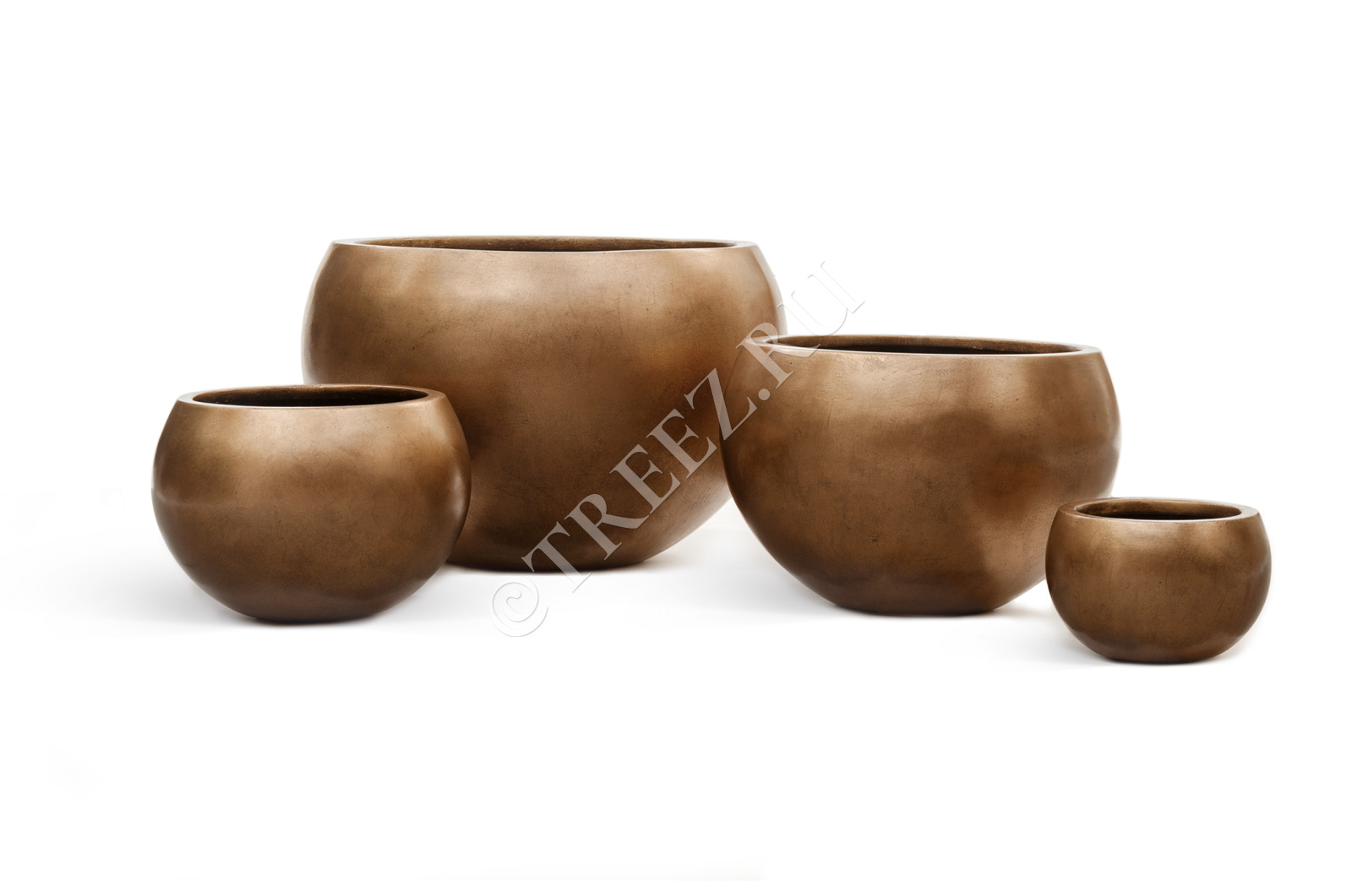 Кашпо TREEZ Effectory - Metal - Низкая полусфера - Тёмное матовое золото