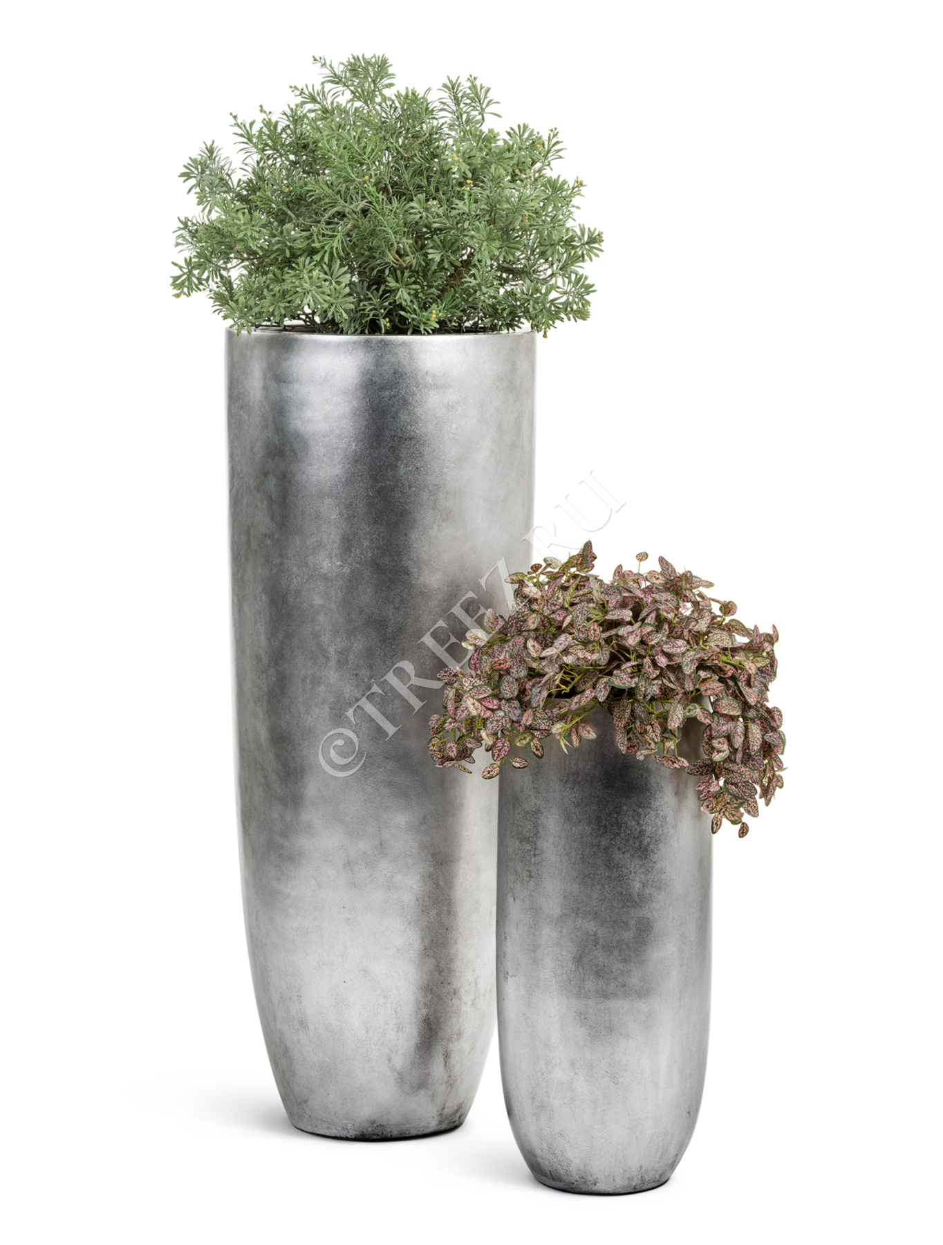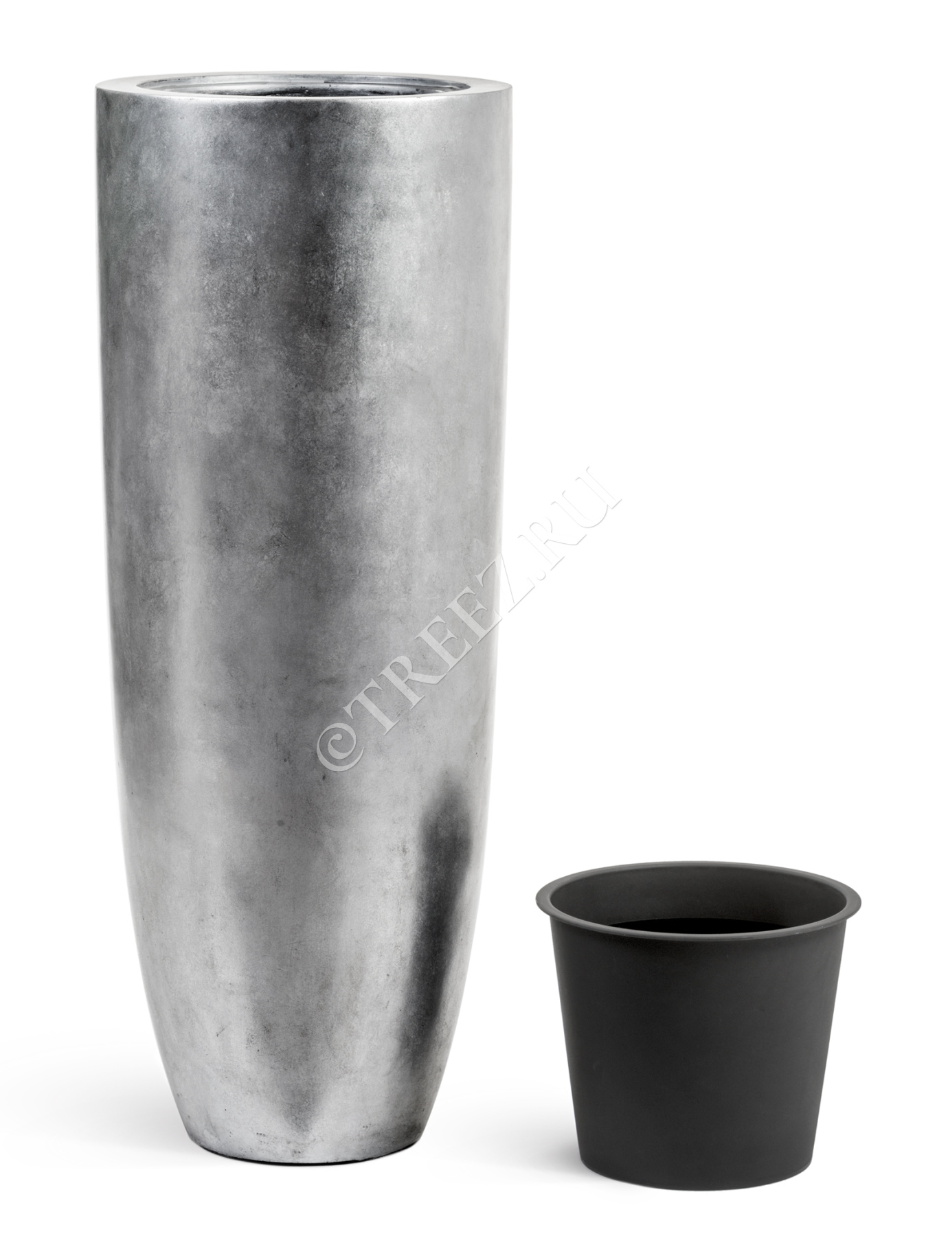 Кашпо TREEZ Effectory - Metal - Высокий конус Giant - Серебро