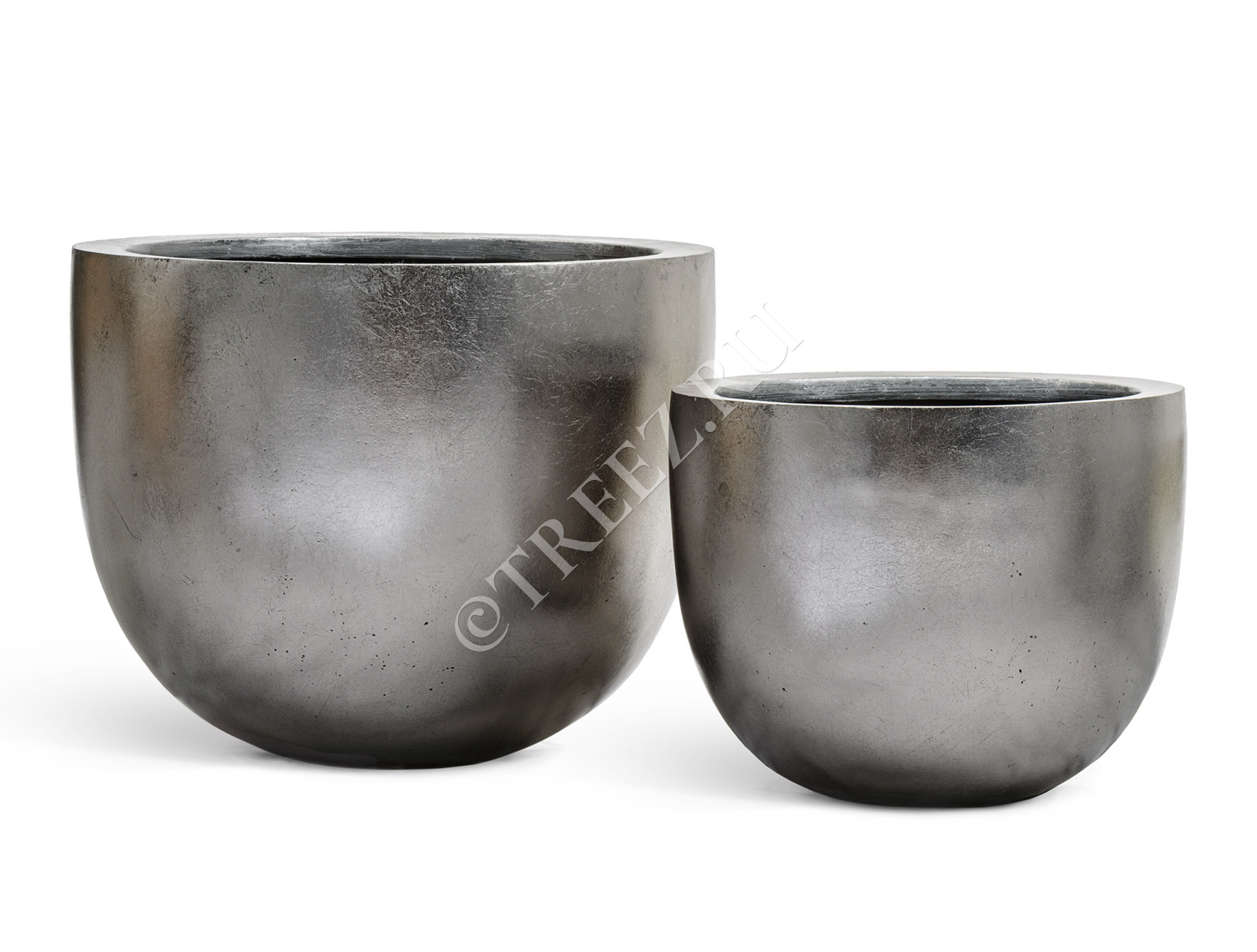 Кашпо TREEZ Effectory - Metal - Низкая полусфера - Стальное серебро