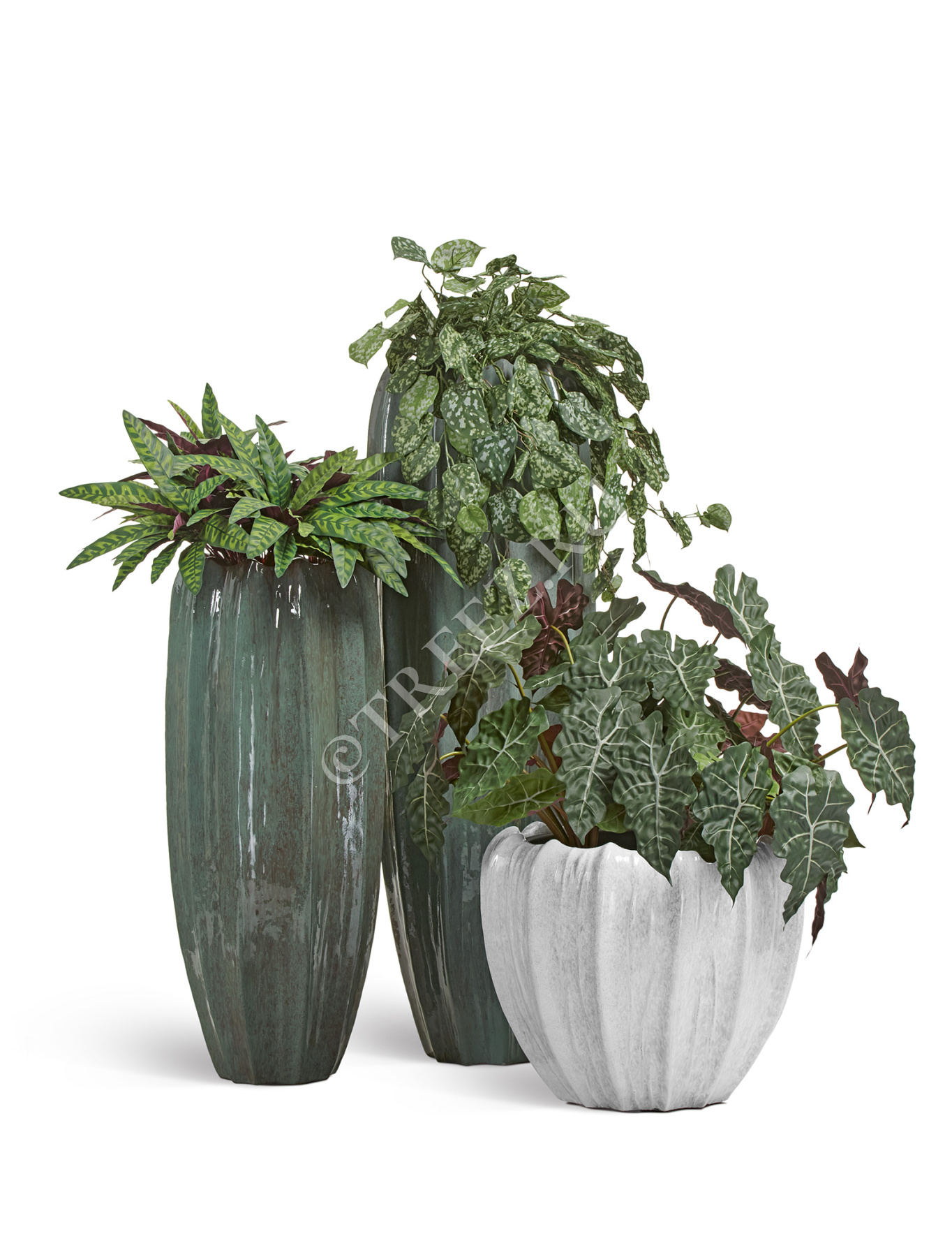 Сет № 22 - Композиция с Калатеями и Диффенбахией в кашпо Treez Effectory Stone Высокая чаша