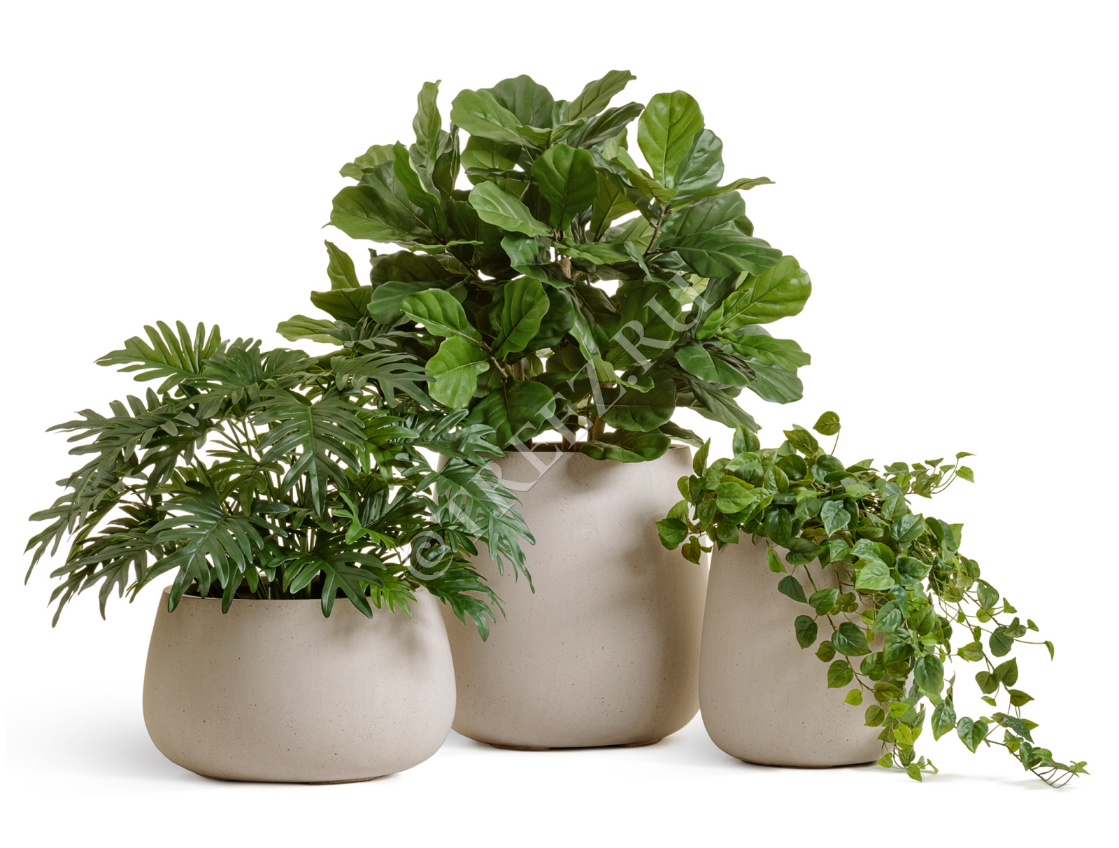 Сет № 18 - Композиция Триптих с Филодендроном Ксанаду в кашпо Treez Effectory Moho