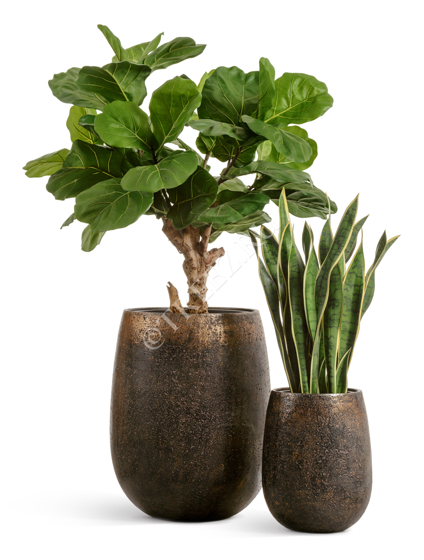 Сет № 146 - Композиция с Сансевиерией и Фикусом Лирата в кашпо Treez Effectory Metal